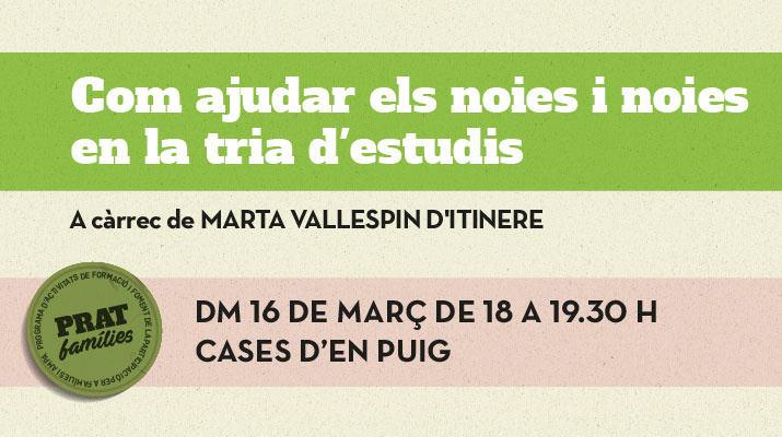 Sessió per conèixer sobre com afecta el moment vital que viuen els i els joves a l'hora d'escollir el seu itinerari formatiu. Entendrem els emocions presents i compartirem eines i recursos que com a doll i paris podem utilitzar per acompanyar-els. Sessió programada en el marc de la Xarxa d'Orientació del Prat. Compta amb el suport de la Diputació de Barcelona.