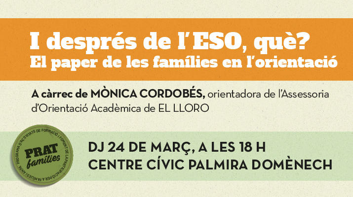 La sessió és programa en el marc de la Xarxa d'Orientació del Prat i anirà a càrrec de Mònica Cordobés, orientadora acadèmica.