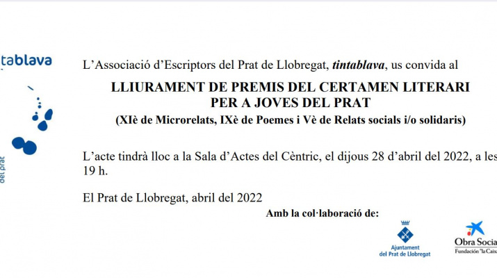 Tintablava: Lliurament de guardons del concurs literari Tintablava 2022 per a joves del Prat