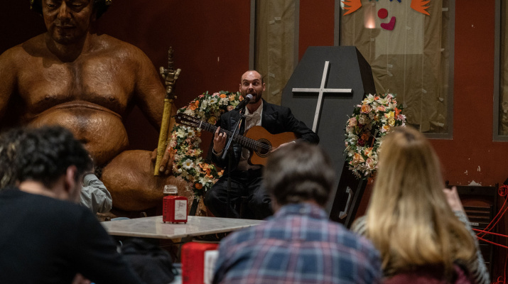 El Rei Carnestoltes acaba de morir i escoltarem els seves penúltimes paraules a la capella situada a la seu de La Casa d'Andalusia, al carrer dels Moreres 105. Allà ens oferirarn una deliciós potatge per acompanyar-ens en aquests moments de tristor i seguir amb la festa.