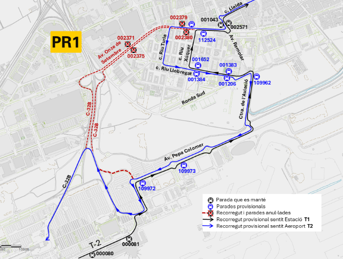 04/12 - El Prat de Llobregat: PR1 Desviament provisional a l'av. Onze de Setembre afectant parades