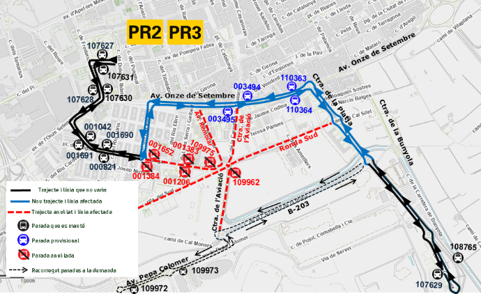 25/09 - El Prat de Llobregat: PR2 - PR3 Desviament provisional a l'avinguda del Remolar afectant parades a causa de la Fira de Festa Major