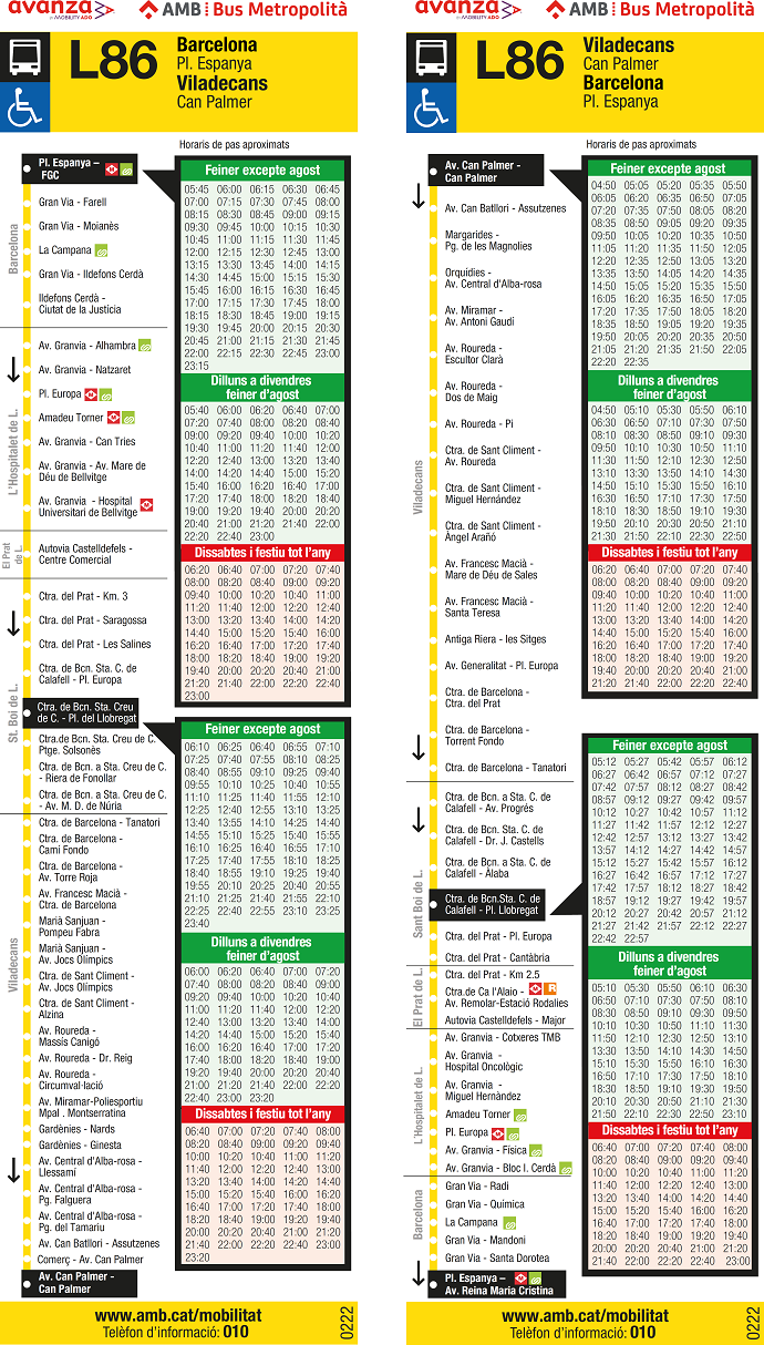 A partir de dissabte 19 de febrer de 2022 s'afegeixen noves expedicions per a la línia L86 amb sortida des de plaça Espanya els dissabtes i festius a les 06:20 - 06:40 - 07:00
